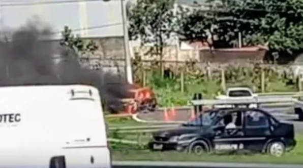 Motoristas que trafegam pela Rodovia Jornalista Francisco Aguirre de Proença (SP-101) na tarde desta segunda-feira (10) enfrentam lentidão nas proximidades do trevo de retorno do Paviotti, em Hortolândia. Um carro de passeio foi tomado pelas chamas, bloqueando parcialmente a alça de acesso e retorno da via.