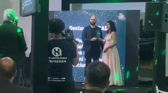 Mathews Patrício foi o primeiro homenageado da noite. Ele conquistou o título de “Maior Influenciador Empresarial da RMC”. A organização analisou e votou em todos os premiados.