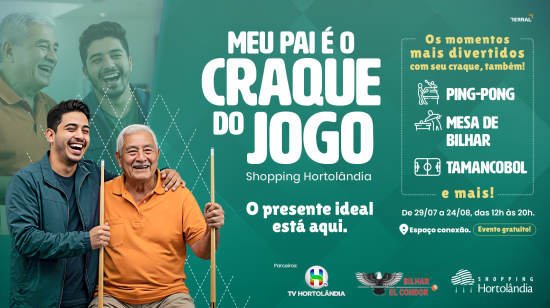 O Shopping Hortolândia preparou uma programação especial para tornar o Dia dos Pais ainda mais inesquecível para as famílias da cidade e região. Entre os dias 29 de julho e 24 de agosto, o Espaço Conexão, localizado no Piso 1 do centro de compras, será palco da ação “Meu Pai é o Craque do Jogo”, com diversas atividades de lazer gratuitas para pais e filhos.